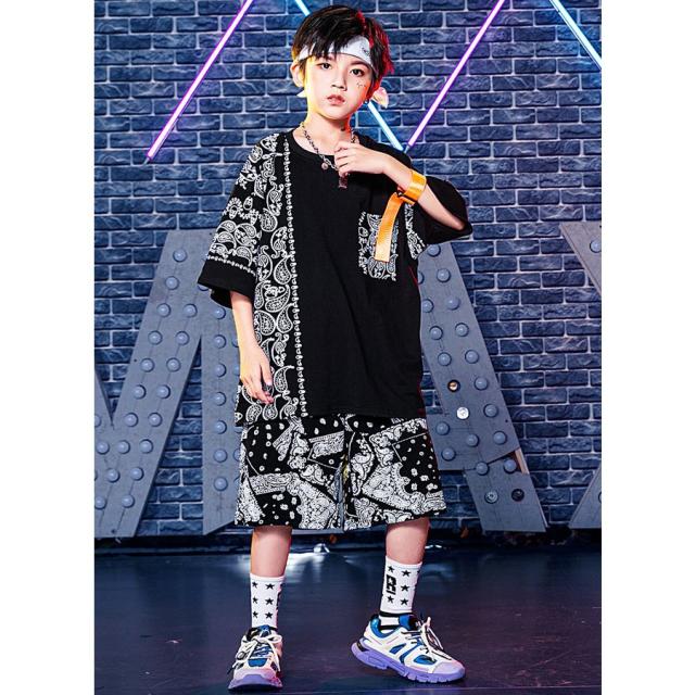 韓国子供服 ヒップホップ ステージ衣装 キッズダンス衣装 ジャズダンス 練習着 体操服 ダンスウェア 団体服 女の子 男の子 Tシャツ セット