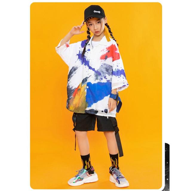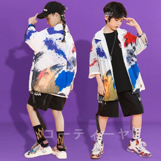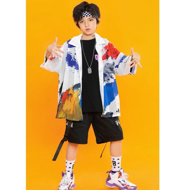 韓国子供服 ヒップホップ ステージ衣装 キッズダンス衣装 ジャズダンス 練習着 体操服 ダンスウェア 団体服 女の子 男の子 Tシャツ セット