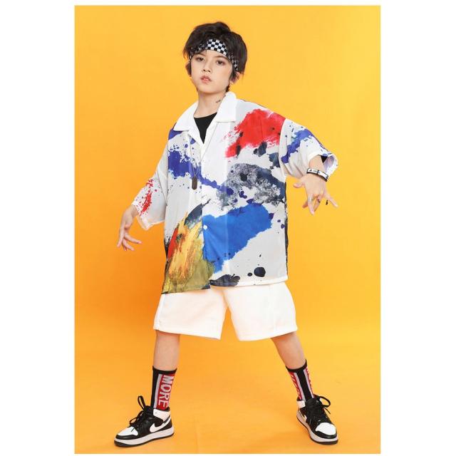 韓国子供服 ヒップホップ ステージ衣装 キッズダンス衣装 ジャズダンス 練習着 体操服 ダンスウェア 団体服 女の子 男の子 Tシャツ セット