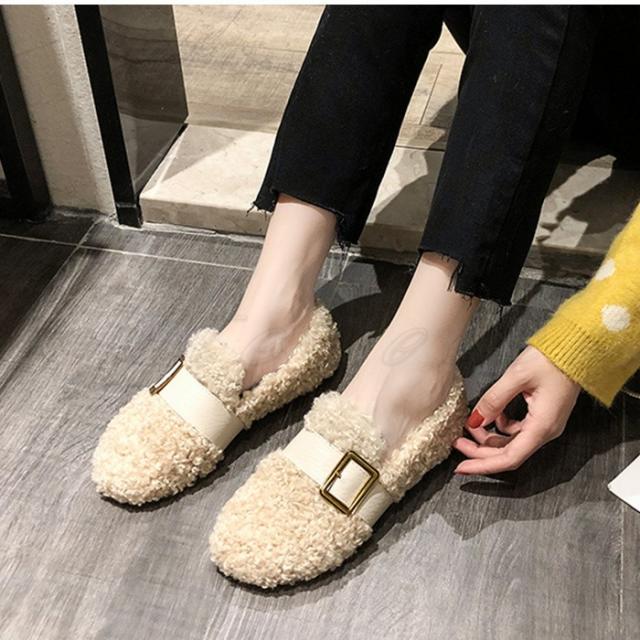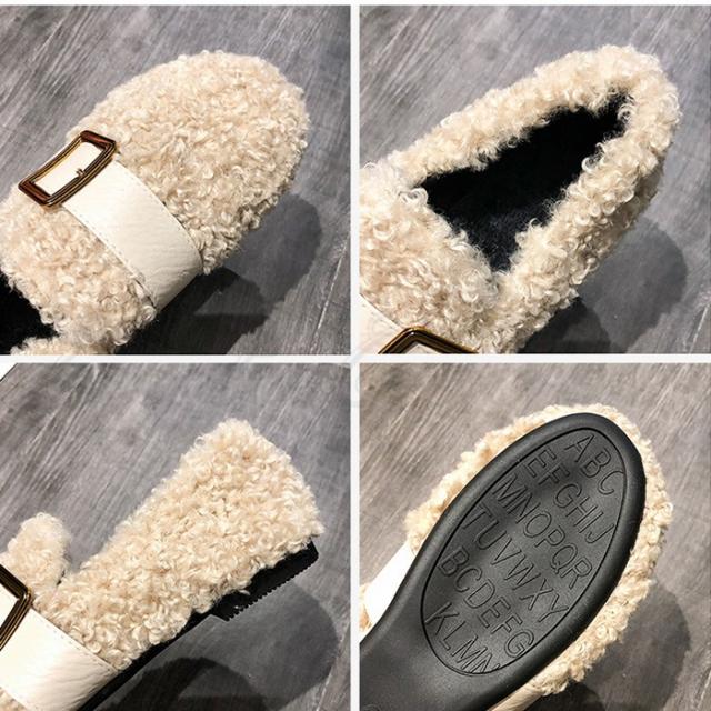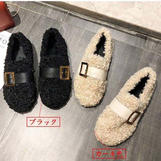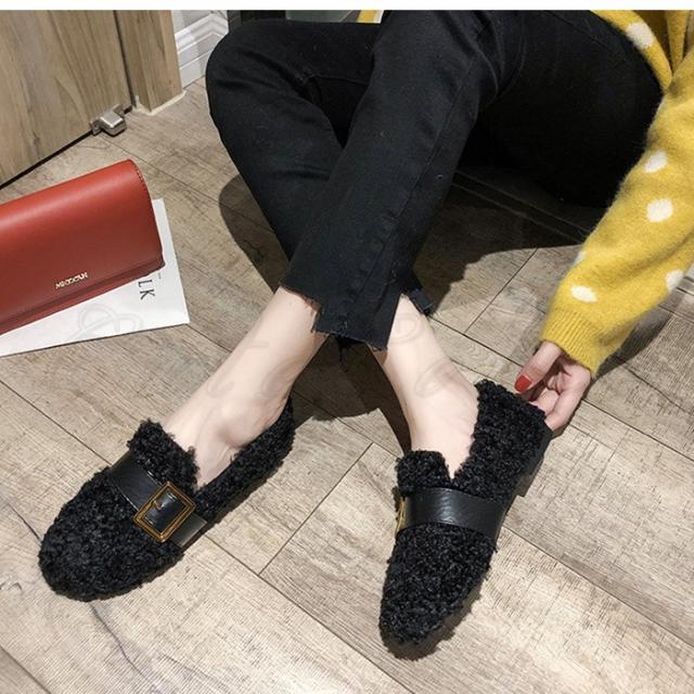もこもこぺたんこパンプス レディース フリース ファーシューズ ぺたんこ靴 ふわふわ 防寒 あったか 裏起毛 ボア付き きれいめ おしゃれ