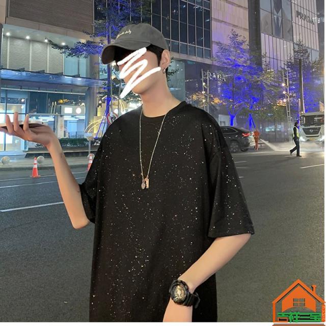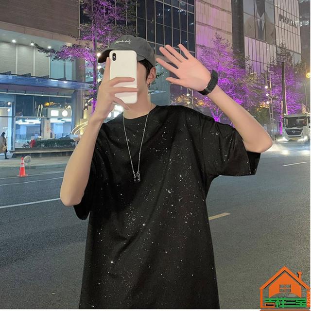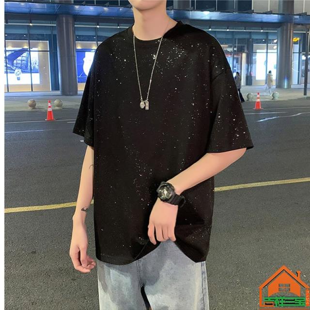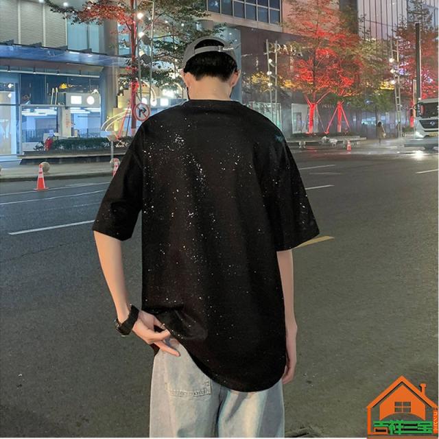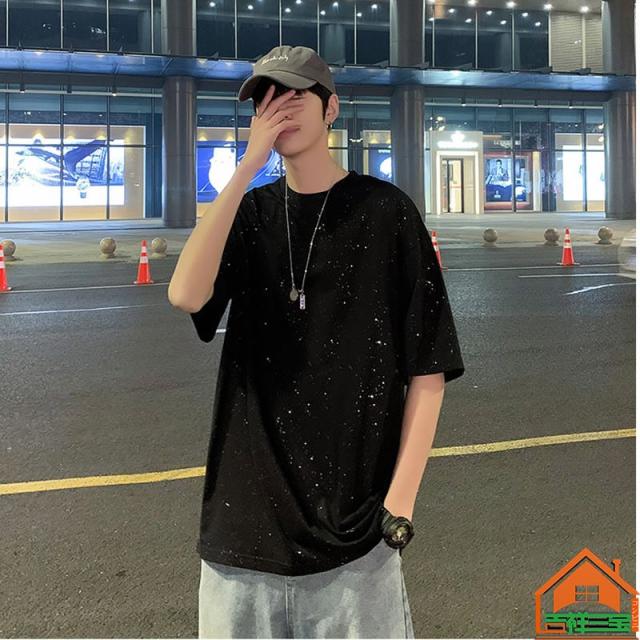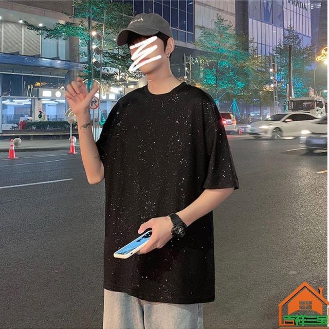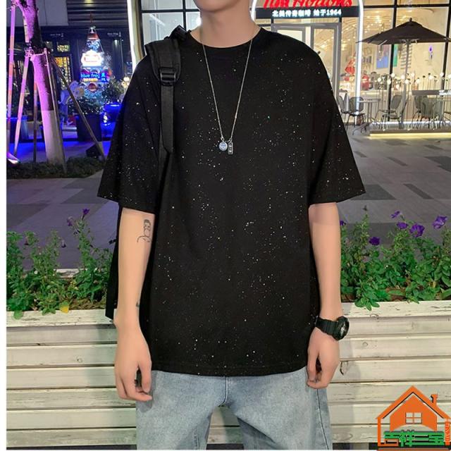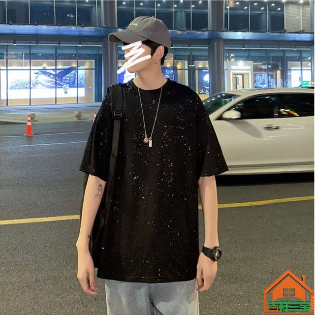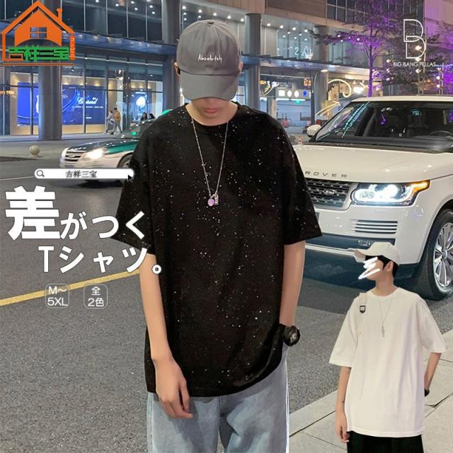 Tシャツ 半袖 星空柄 キラキラ柄 ゆったり ハーフスリーブ ティーシャツ ドロップショルダー tee 韓国 ファッション 男女兼用 ショートスリーブ 春 夏 個性