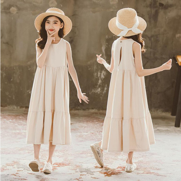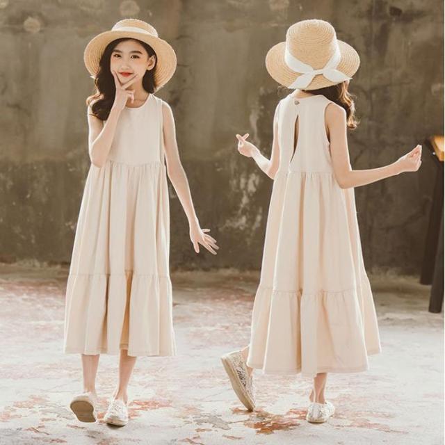 子供服 女の子 夏 可愛い 韓国子供服 キッズ ワンピース ノースリーブ 無地 ロング丈 おしゃれ 可愛い