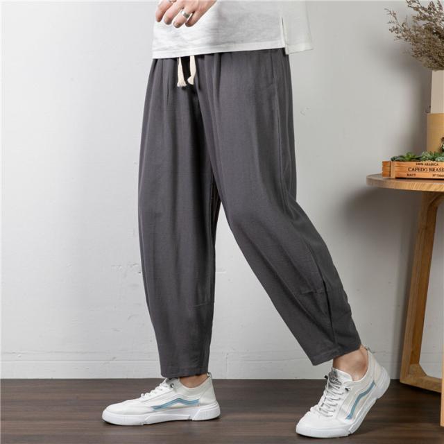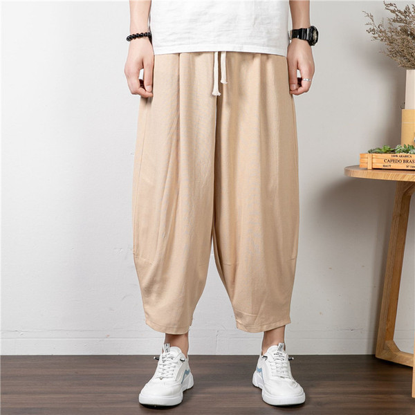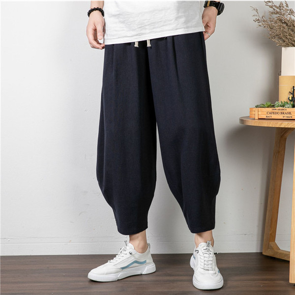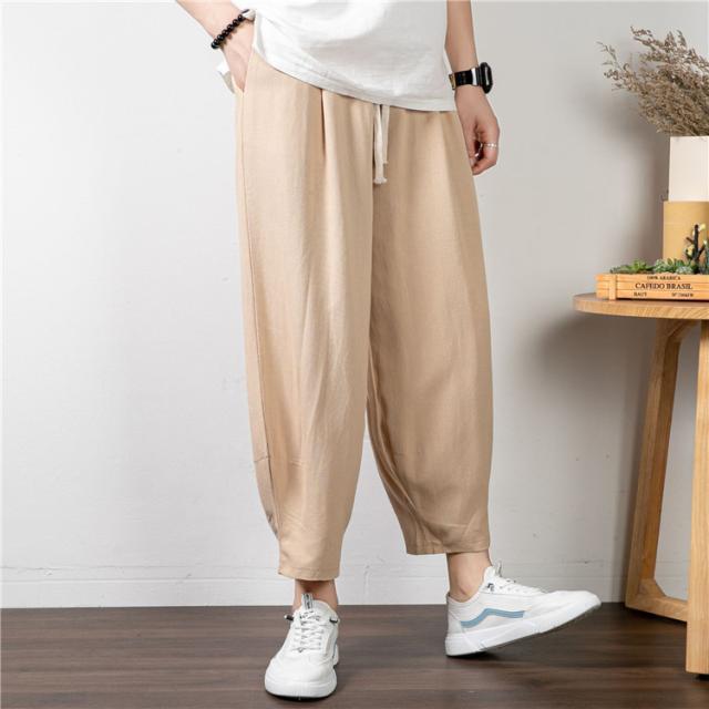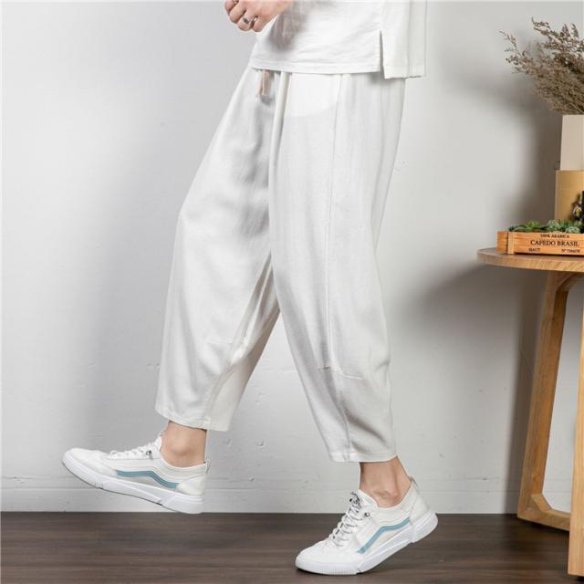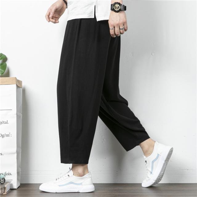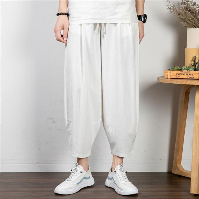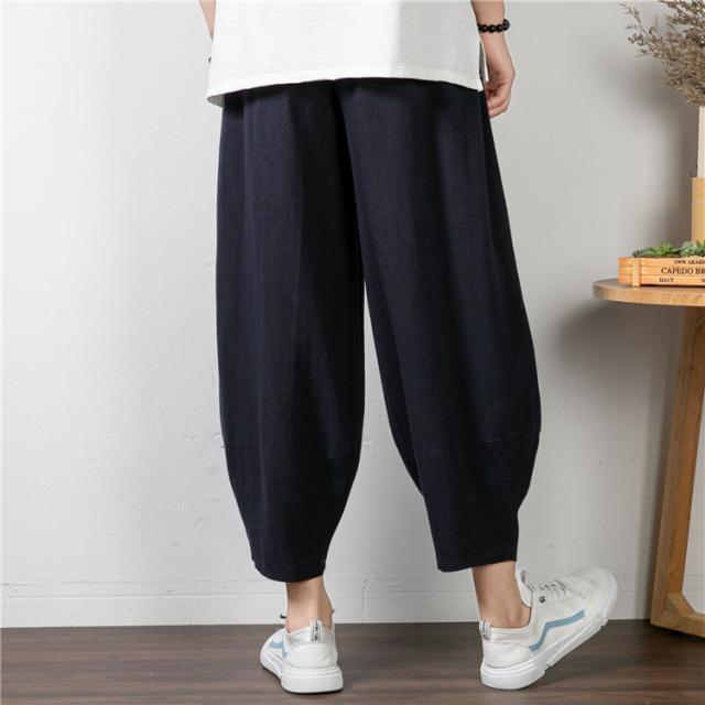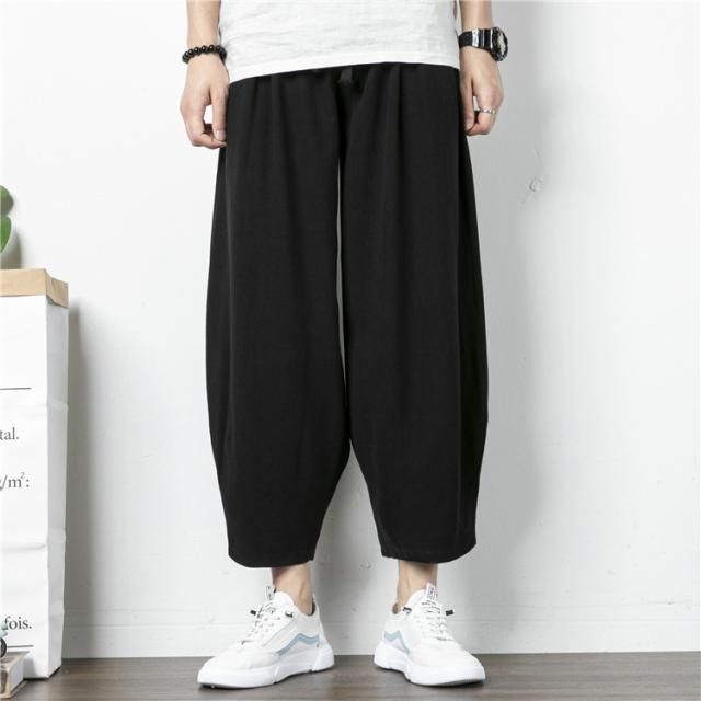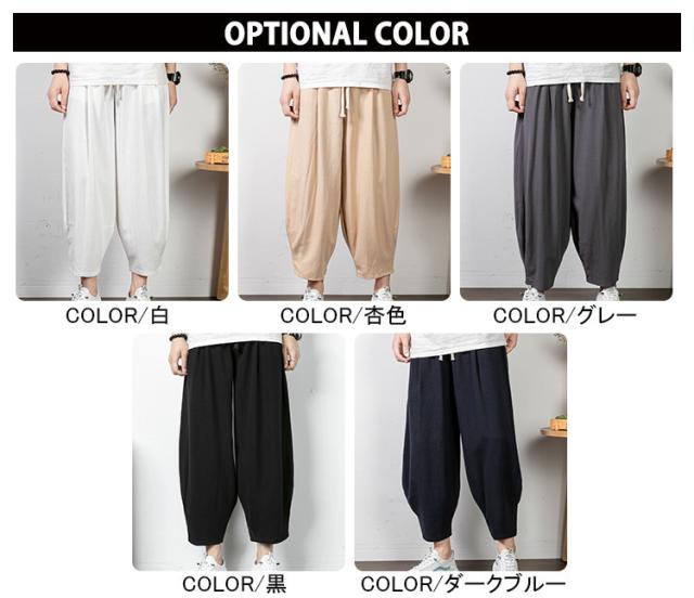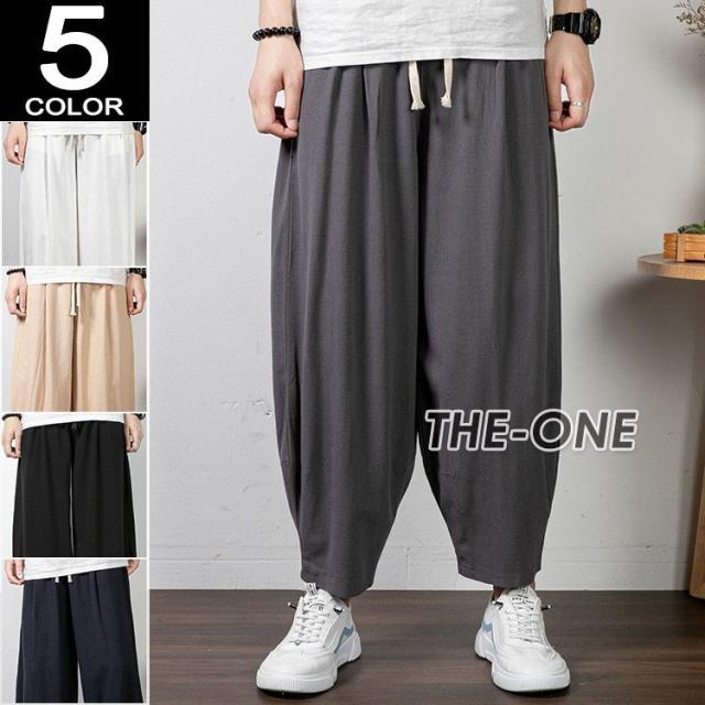 サルエルパンツ メンズ 大きいサイズ ワイドパンツ メンズ 夏 九分丈 無地 ゆったり ウエストゴム カジュアル