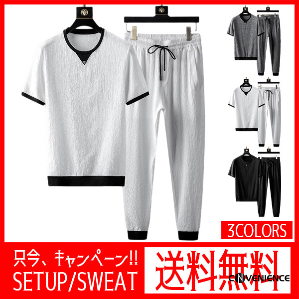 メンズ スウェット 上下セット 半袖 ロングパンツ ルームウェア ジャージ 上下 運動着 部屋着 カジュアル ルームウェア スポーツウェア 涼しい 夏服