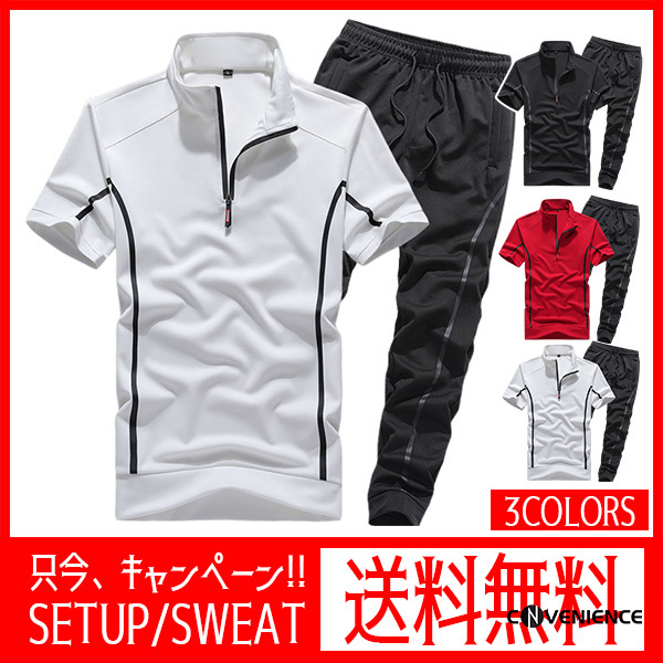 セットアップ メンズ 上下セット 半袖 大きいサイズ おしゃれ 2点セット カジュアル 夏服 ロングパンツ 吸汗速乾 涼感 通気性 薄手 着痩せ 細身 スリム