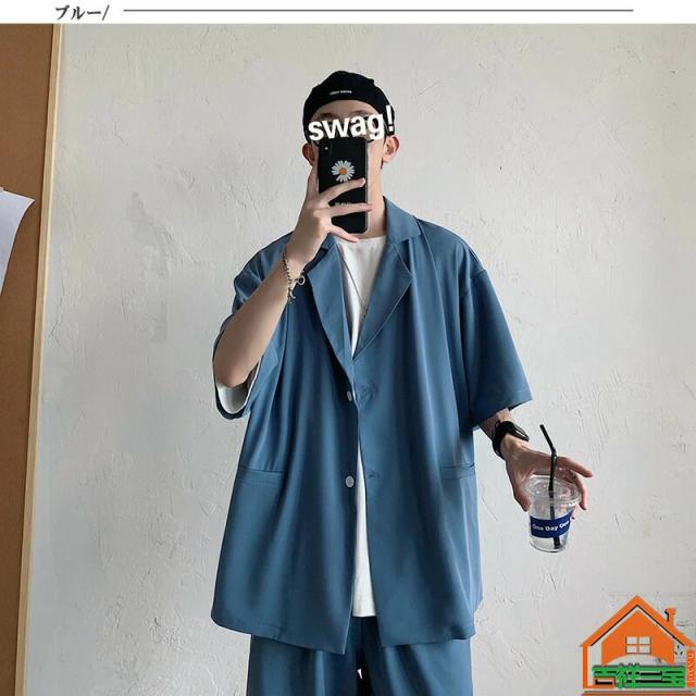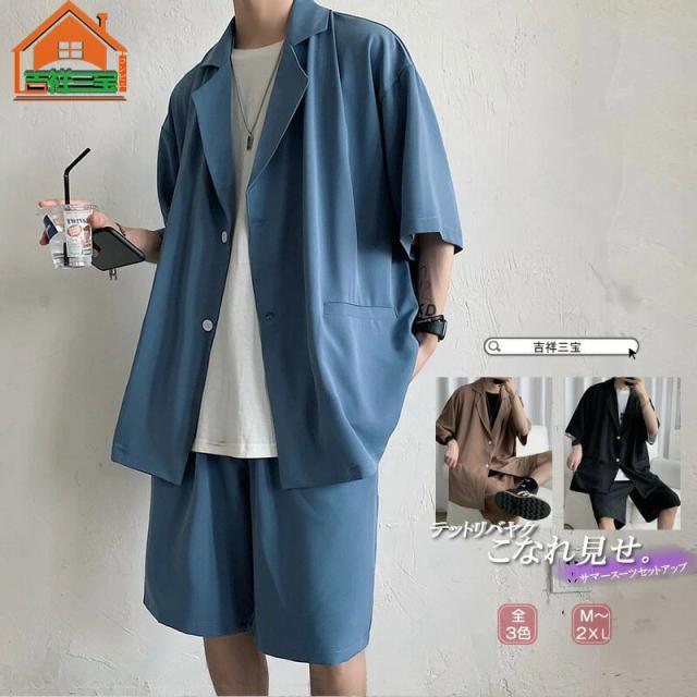 セットアップ メンズ 韓国 夏物 サマー セットアップ 半袖 サマースーツ 上下2点セット テーラード ショーツ ショートパンツ ハーフパンツ サマーセットおしゃれ