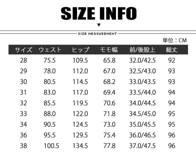 | サイズ | 28 29 30 31 32 33 34 36 38 |