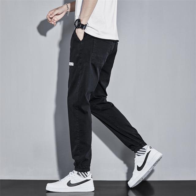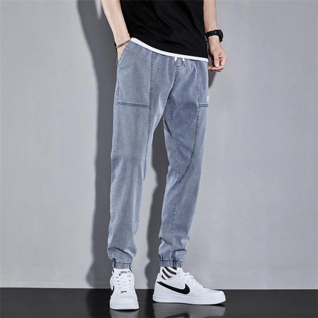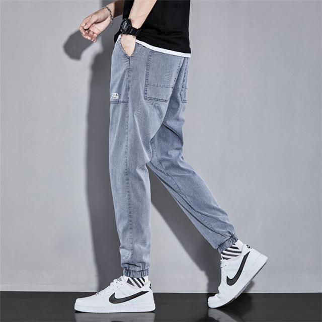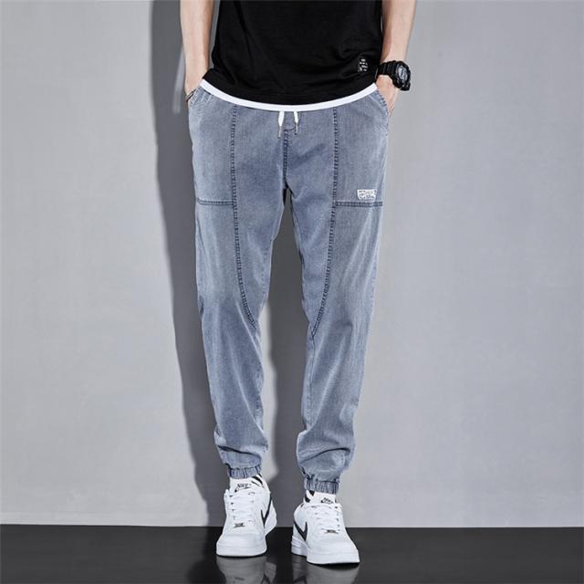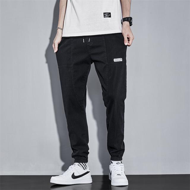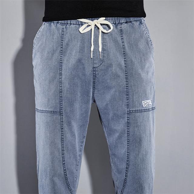 リブパンツ メンズ サルエルパンツ デニムパンツ ジーンズ ウエストゴム テーパードパンツ ボトムス お兄系