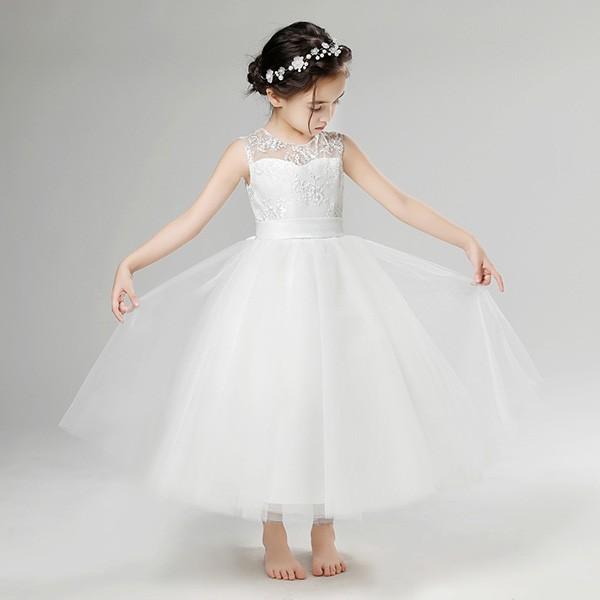 【送料無料】キッズ ドレス 子供服 キッズ服 キッズドレス ピアノ 発表会 結婚式 ワンピース 女の子 ロングドレス ビスチェドレス ベルト ノースリーブ 透け感 プリンセスライン ロング ホワイト フォーマルドレス パーティードレス
