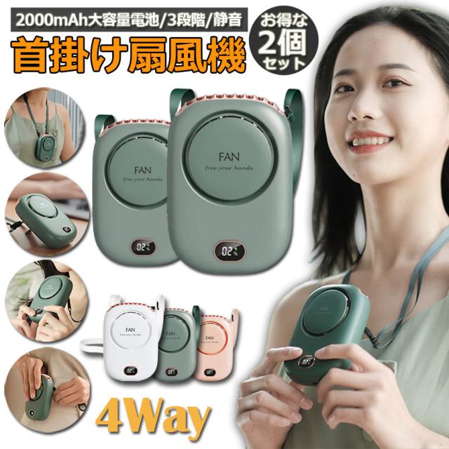 首掛け扇風機 携帯扇風機 2個セット ベルトファン 腰掛けファン ハンドルファン 卓上両用 スタンド機能 usb Type-C 充電式 2000mAh 10H長時間稼働 3段階風量調整 静音 小型 ミニファン 軽量 持ち運び 熱中症対策 ネッククーラー 電気残量表示