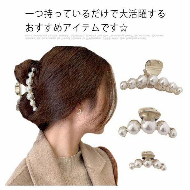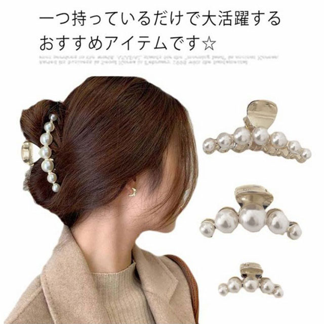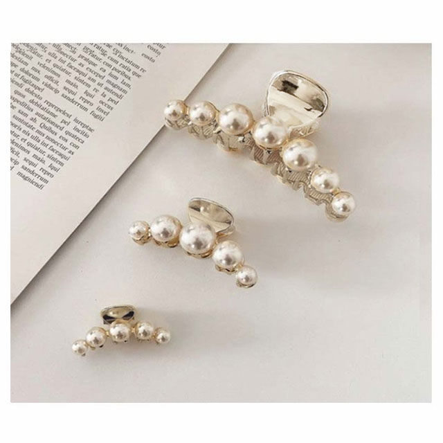 ヘアクリップ パール ミニ バンス クリップ【3サイズ選べる】合金 ゴールド アンティーク 大 ヘアアクセ ヘアアクセサリー まとめ髪 髪留め 韓国 小さめ 大きめ 上品 高級感 奢華 きれいめ おしゃれ お呼ばれ