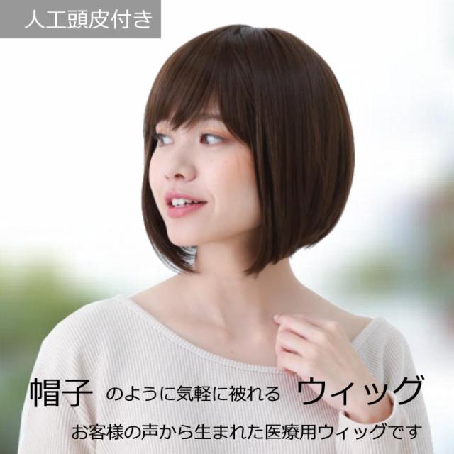 抗がん剤治療の副作用による脱毛や、頭部の外傷・アトピー等でお悩みの方に最適な毛付き帽子。医療用帽子と組み合わせる事で、自毛のように毛髪を出した状態で帽子を被ることができます。サイズ調節のアジャスター機能でお好みのサイズに調節可能(FREEサイズ56cmです)。また、頭部を覆うネットの部分は伸縮性のある素材を使用しています。