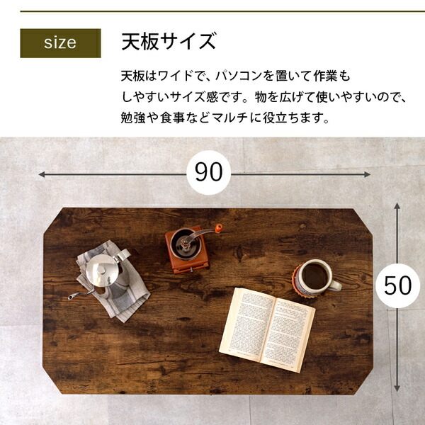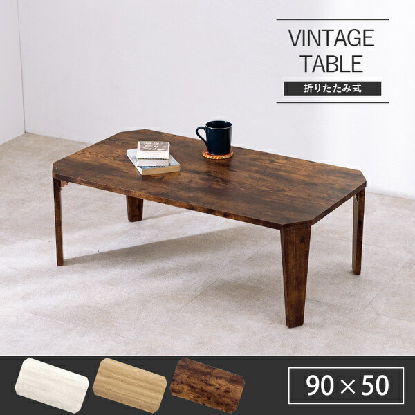スタイリッシュな八角形のセンターテーブル。まるで天然木のような古木調の色合いと木目感の再現にこだわりました。折りたたみ機能付き。