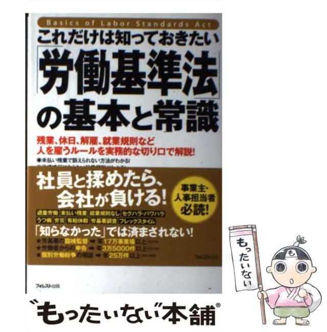 商品名:【中古】 これだけは知っておきたい「労働基準法」の基本と常識 / 吉田秀子 / フォレスト出版 [単行本(ソフトカバー)]【メール便送料無料】