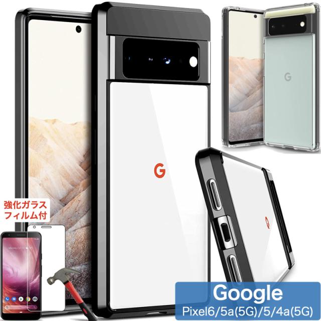 Google Pixel 8 8Pro 7a 6a 6 ケース 6Pro 5a 5G 6.0インチ 4a 5G 強化ガラスフィルム付き 保護フィルム カバー クリア ブラック ハイブリッドケース グーグル ピクセル クリアとブラック