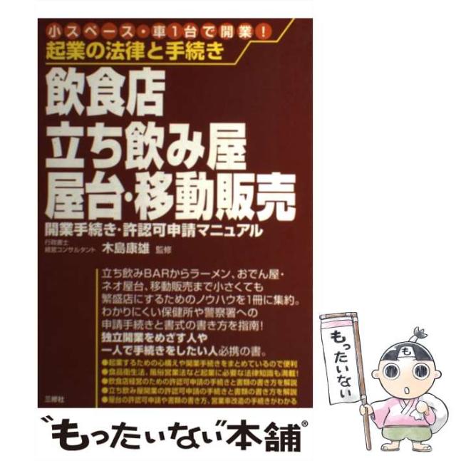 商品名:【中古】 飲食店・立ち飲み屋・屋台・移動販売開業手続き・許認可申請マニュアル 小スペース・車1台で開業! 起業の法律と手続き / 木島康雄 / 三修社 [単行本]【メール便送料無料】