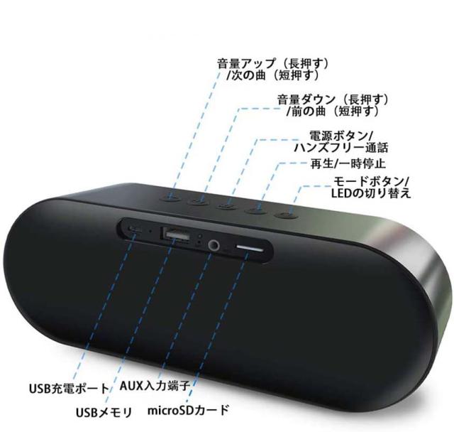 【高音質bluetoothスピーカー・二つの52mmラッパ】:内蔵高感度マイクと先端技術を作用されて、二つの52mmラッパを両立するのは、 10W(5W×2 )デュアルドライバを始めとする高音質を実現できます。低中高音がクリアなので ボーカルやBGMが 非常に聴き疲れしないワイヤレス スピーカーです。全方位に音を響き渡り、まるで音楽に包み込まれたような空間を作り出します。どこに置いても外観からは想像できない大音量とフルパワなサウンドを楽しめます。【LEDライト付き・持ち運びやすい】:片手で持てるサイズで携帯性に優れたBluetooth5.0搭載のワイヤレススピーカーです。最大40m程度の通信が可能で、様々な場所で音楽を楽しめます。約468g、200x55x76mmの手のひらサイズで、usb充電式で給電しやすくて、片手でつかんで軽々と持ち運べます。また、本bluetooth スピーカーにはきれいなLEDライト(LEDライトのモード調節も可能)が付いており、昼も夜も注目されます。