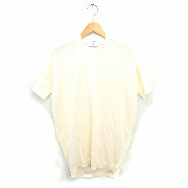 【中古】アズールバイマウジー AZUL by moussy ワンピース ニット ひざ丈 Vネック プルオーバー 半袖 S アイボリー