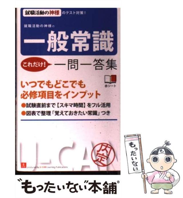 商品名:【中古】 就職活動の神様の一般常識これだけ!一問一答集 第3版 (就職活動の神様のテスト対策!) / ユーキャン就職試験研究会 / ユーキャン学 [単行本(ソフトカバー)]【メール便送料無料】