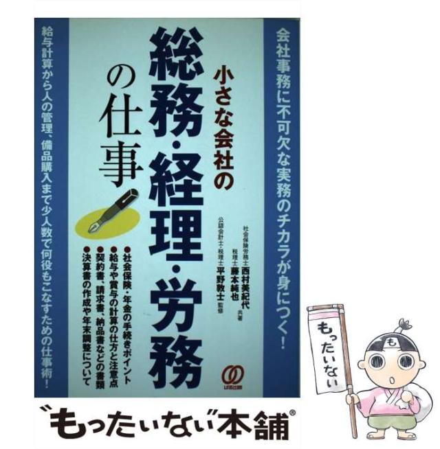商品名:【中古】 小さな会社の総務・経理・労務の仕事 / 西村美紀代 藤本純也、平野敦士 / ぱる出版 [単行本]【メール便送料無料】
