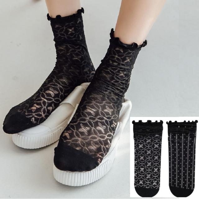 新作 お洒落ソックス 靴下 SOCKS デザイン柄 黒 ブラック パンプスに合う チラ見せ レース 可愛い くすみカラー 靴下 レディース 薄手 おしゃれ 春 夏 秋 通気性 伸縮性 トレンド ソックス フリーサイズ S M L サイズ オールシーズン