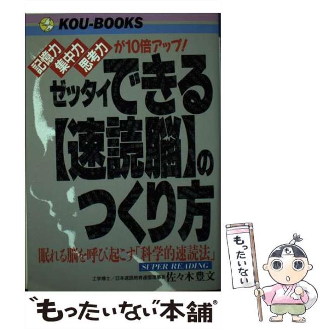 商品名:【中古】 ゼッタイできる「速読脳」のつくり方 記憶力・集中力・思考力が10倍アップ! / 佐々木 豊文 / こう書房 [単行本]【メール便送料無料】