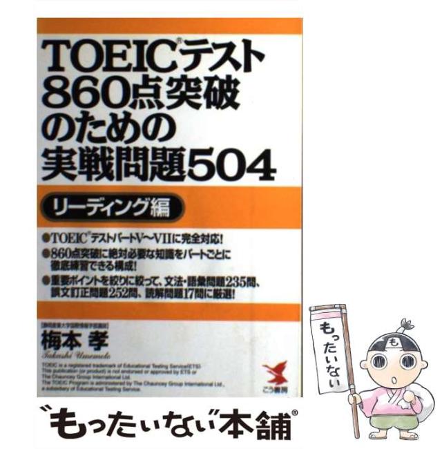 商品名:【中古】 TOEICテスト860点突破のための実戦問題504 リーディング編 (Kou books) / 梅本孝 / こう書房 [単行本]【メール便送料無料】