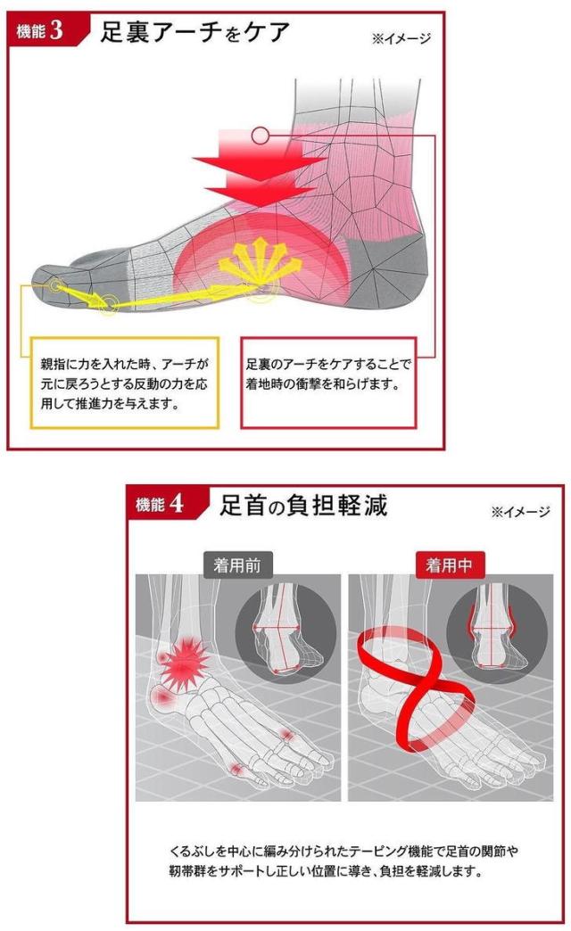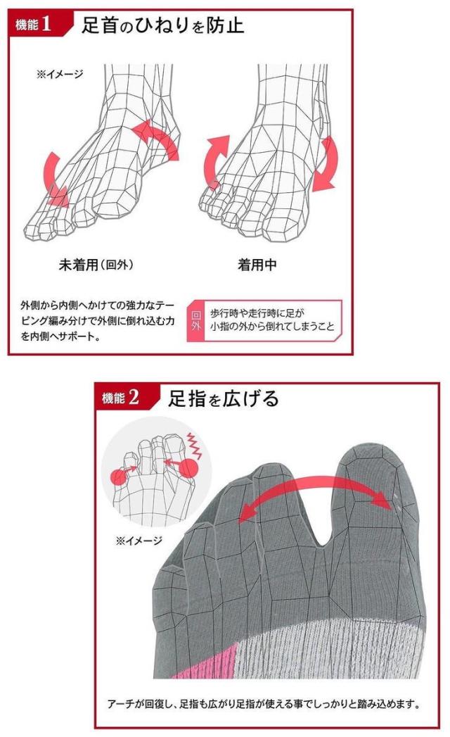 特許取得の足袋型高機能サポーターで、足首、足裏をしっかり支える。