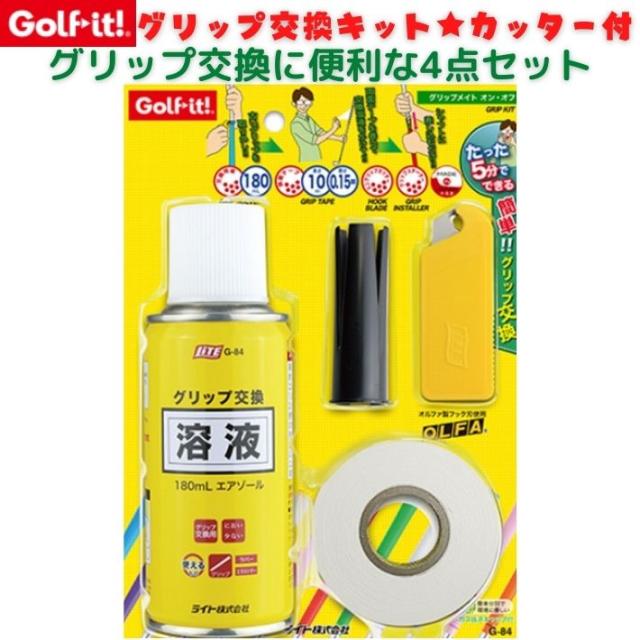 ゴルフイット G-84 ゴルフ グリップ交換 4点セット グリップ交換キット グリップ交換液 溶液 テープ カッター グリップ交換 ドライバー アイアン グリップメイト オン オフ グリップ メンテナンス ゴルフ用品 小物 ライト 自宅工房 スターターキット ゴルフクラブ 補修用品