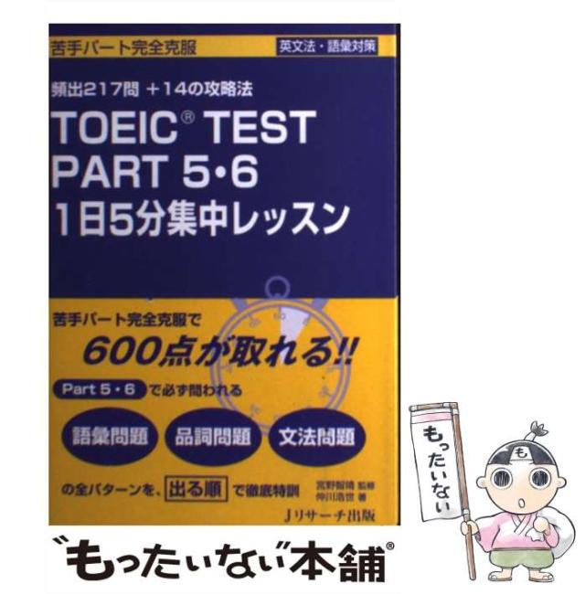 商品名:【中古】 TOEIC TEST PART 5・6 1日5分集中レッスン 苦手パート完全克服 頻出217問+14の攻略法 英文法・語彙対策 / 仲川浩世、宮野智靖 / Jリサーチ出版 [単行本]【メール便送料無料】