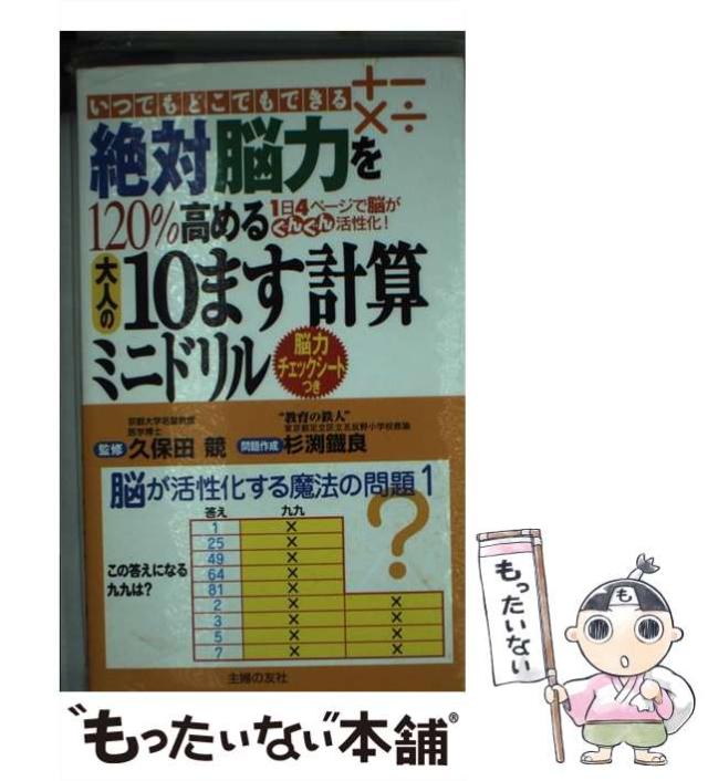 【中古】 絶対脳力を120%高める大人の10ます計算ミニドリル いつでもどこでもできる 1日4ページで脳がぐんぐん / 杉渕 鐵良、 久保田 競 / 主婦の友社 [新書]【メール便送料無料】