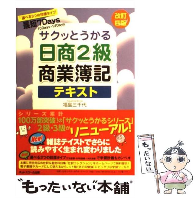 商品名:【中古】 サクッとうかる日商2級商業簿記テキスト 改訂4版 / 福島三千代 / ネットスクール出版本部 [単行本]【メール便送料無料】
