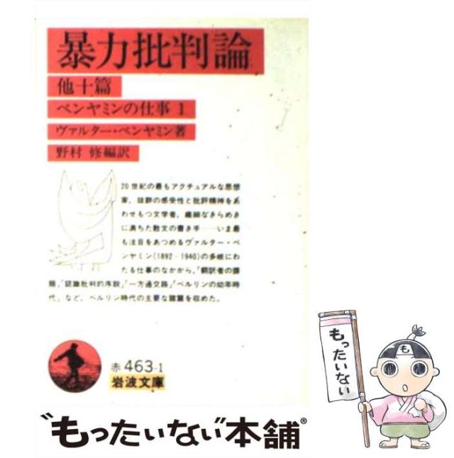 商品名:【中古】 暴力批判論 他十篇 (岩波文庫) / ヴァルター ベンヤミン、 野村 修 / 岩波書店 [文庫]【メール便送料無料】
