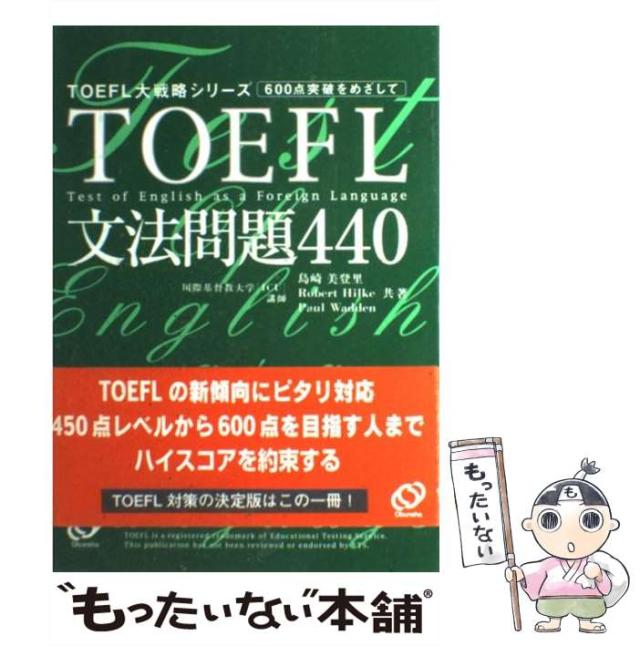 商品名:【中古】 TOEFL文法問題440 (TOEFL大戦略シリーズ 600点突破をめざして) / 島崎美登里 ロバート・ヒルキ ポール・ワーデン / 旺文社 [単行本]【メール便送料無料】