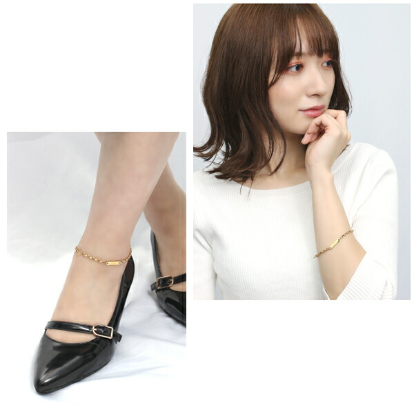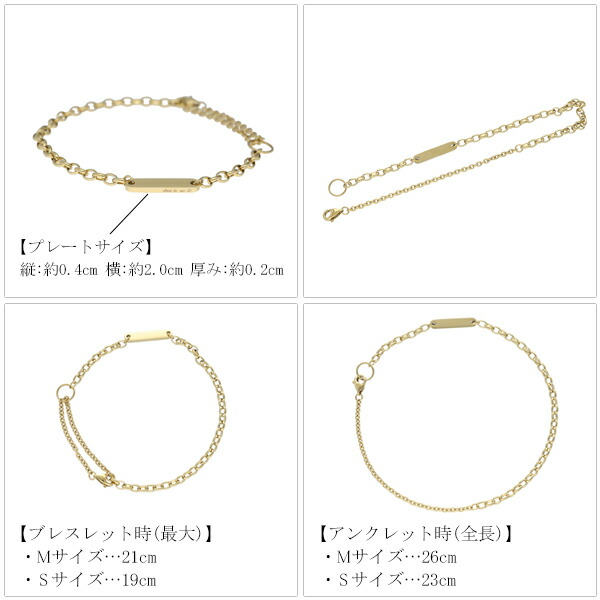 刻印無料 close to me シンプル 2Way ペアブレスレット ペアアンクレット ステンレス ゴールドコーティング 金色 上品 ブランド