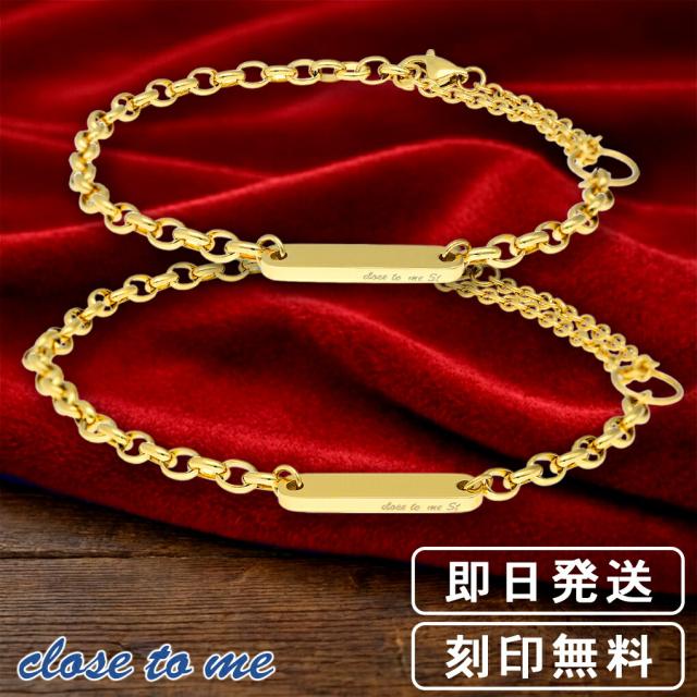 刻印無料 close to me シンプル 2Way ペアブレスレット ペアアンクレット ステンレス ゴールドコーティング 金色 上品 ブランド