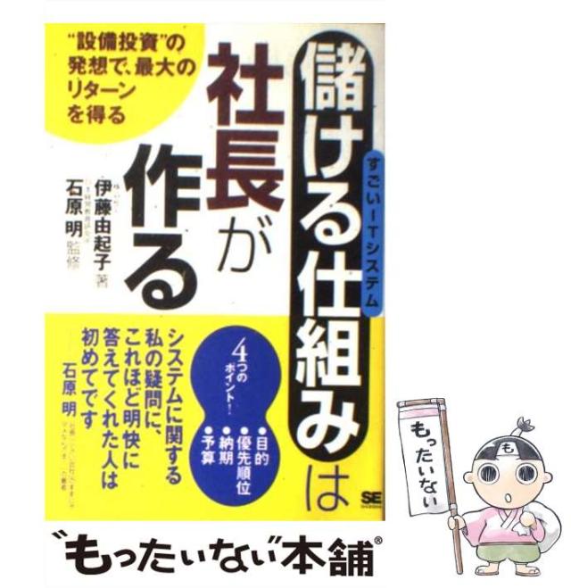 商品名:【中古】 「儲ける仕組み(すごいITシステム)」は社長が作る ”設備投資”の発想で、最大のリターンを得る / 伊藤由起子、石原明 / 翔泳社 [単行本]【メール便送料無料】