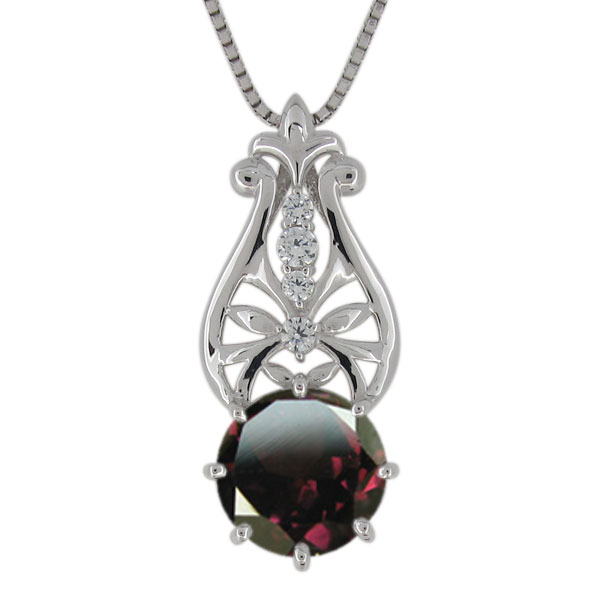 1月誕生石ロードライトガーネットを使用したシルバー製の、ボタニカルモチーフのネックレスペンダントです。