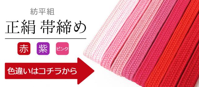 正絹100%、シンプルな単色カラーの『正絹紡平組帯締め』でございます。