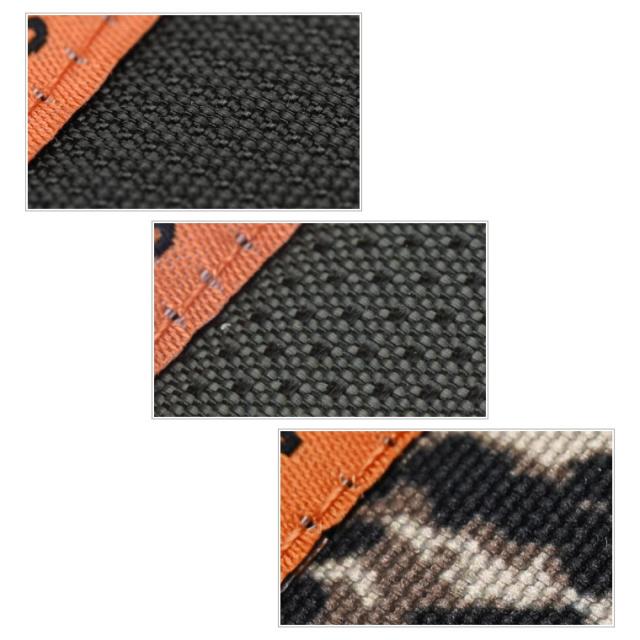 レオパード柄はフワフワとした毛足のある生地感となり、ブラックとモスグリーンは凹凸のある生地感となります。