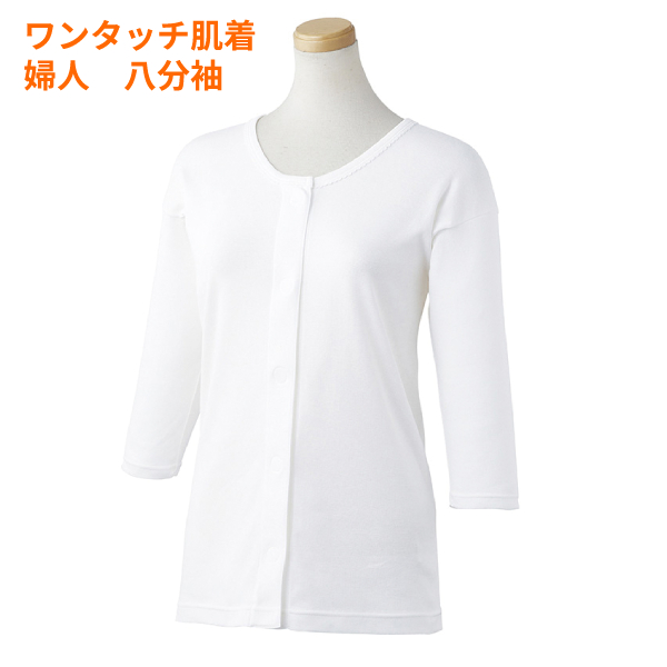 介護肌着 婦人用 前開き 綿100% ワンタッチ肌着 八分袖 テープ 検温穴付 女性用 レディース 下着 インナー ウィズエール 川本産業 介護衣類 介護用品