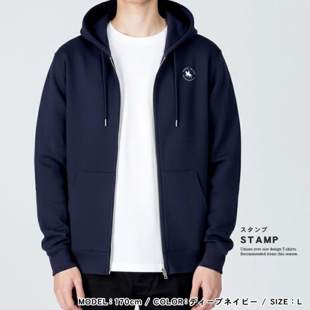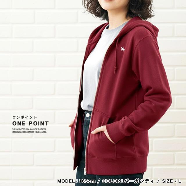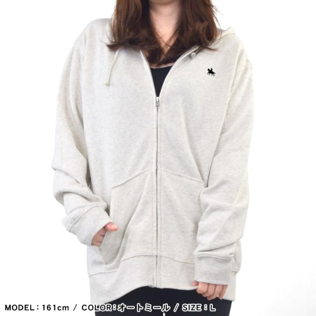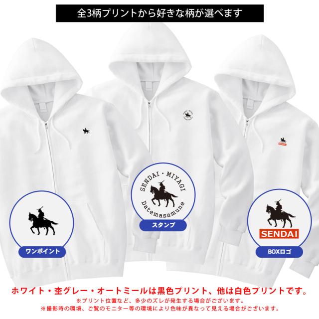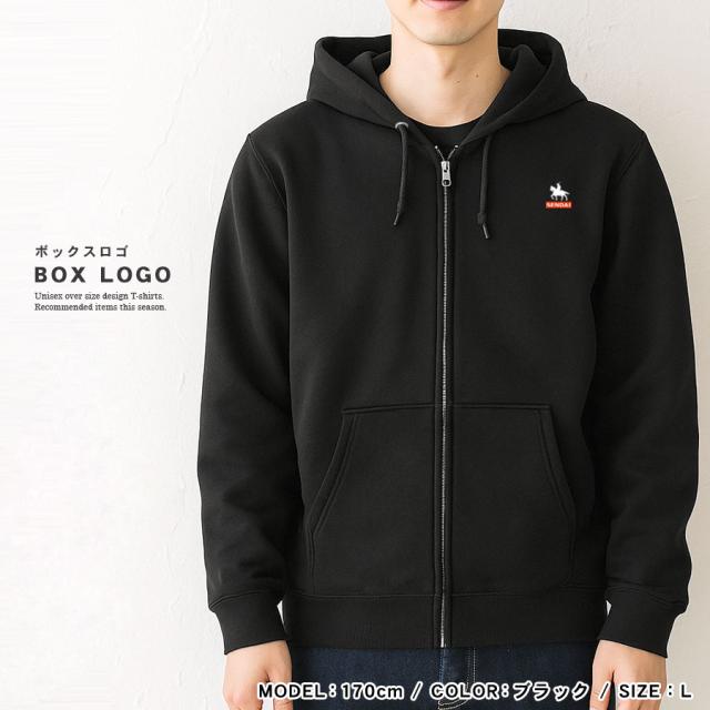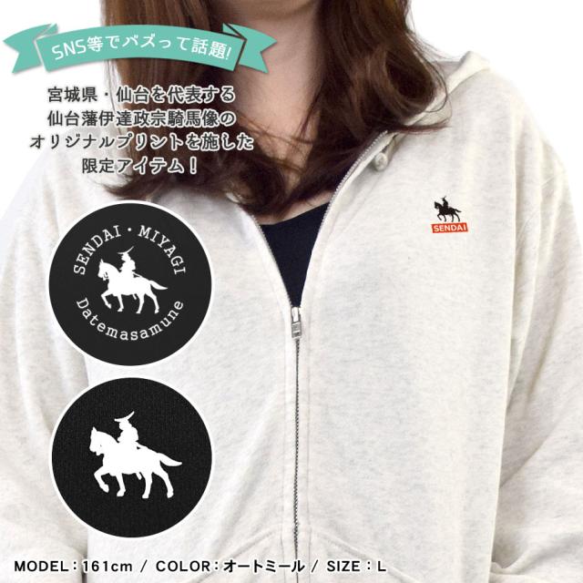 パーカー ジップアップ 政宗 仙台藩 伊達政宗 騎馬像 レディース メンズ 裏毛 長袖 選べる 政宗 ワンポイント プリント 大きいサイズ ゆったり BIG オーバー トップス ロング丈 スウェット 部屋着 送料無料 (toms00217)