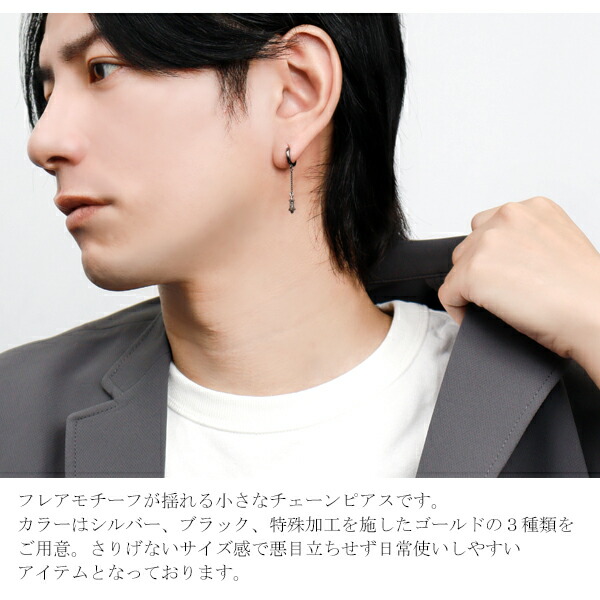選べる3カラー 揺れる フレア チェーン フープピアス 1P 片耳用 23金 K23RGP ゴールドカラー 金 ブラック 黒 ジルコニア ブランド Royal Stag ZEST ロイヤルスタッグ