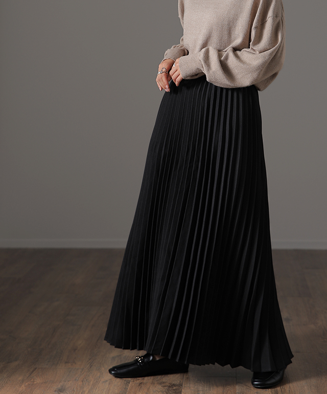 ふんわりと広がるシルエットがフェミニンなプリーツスカートです。