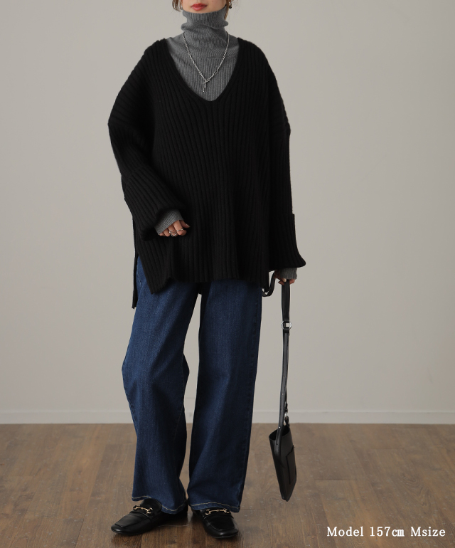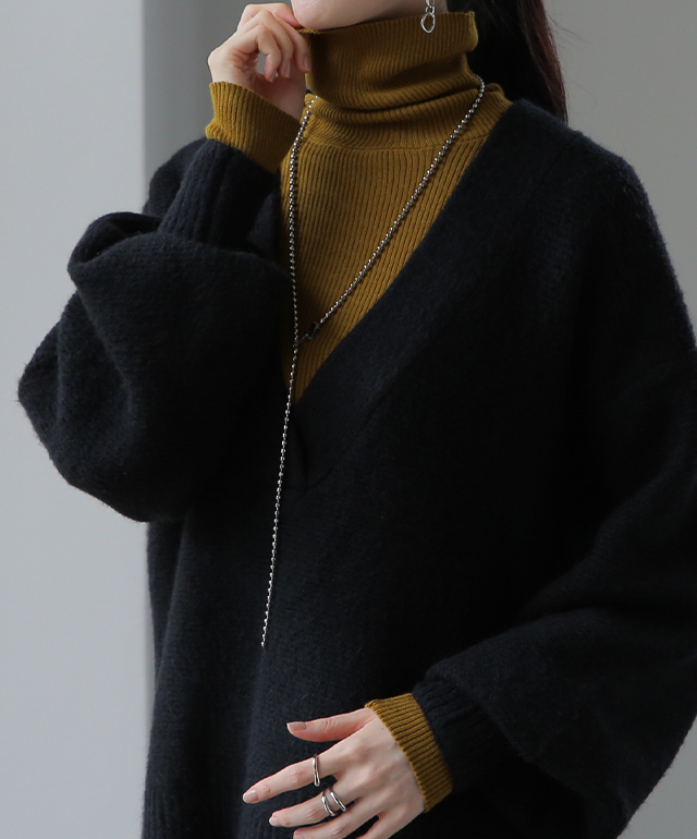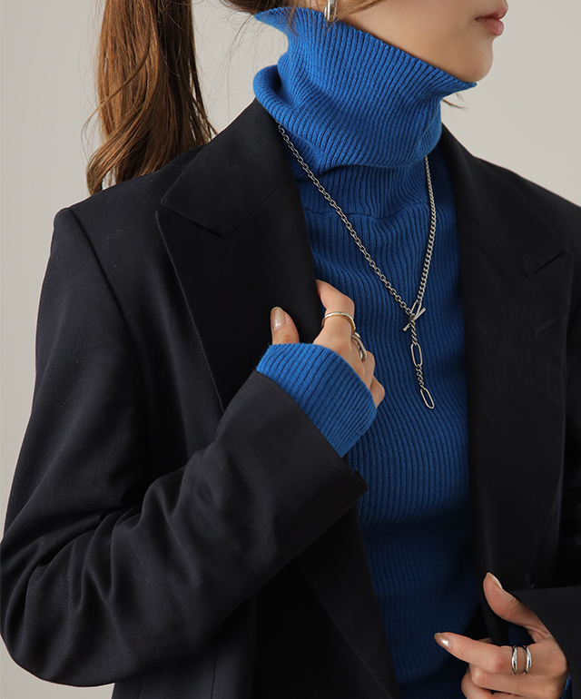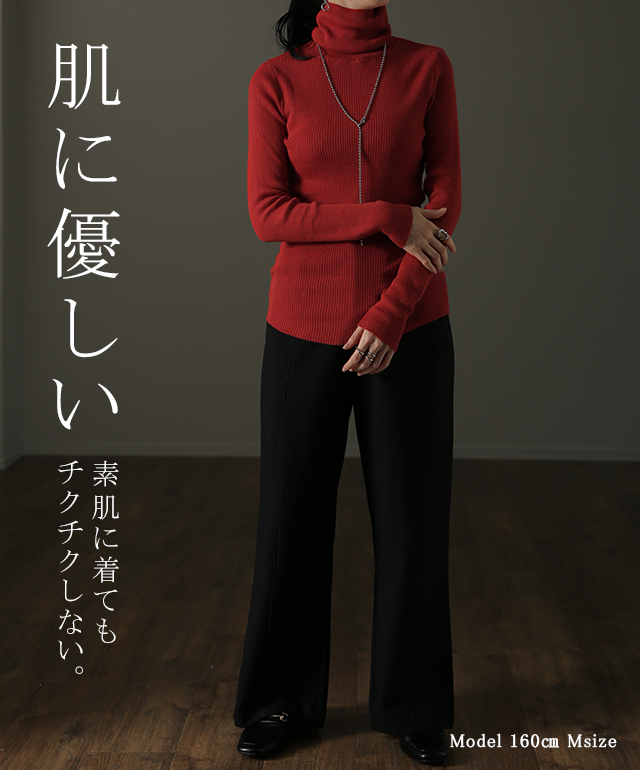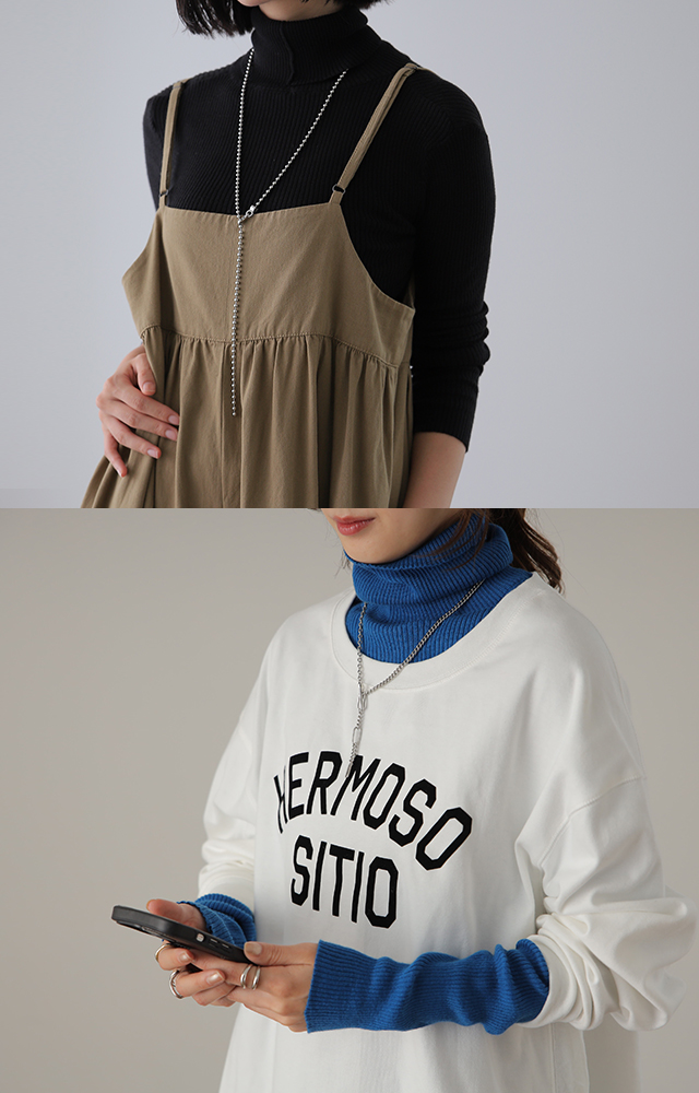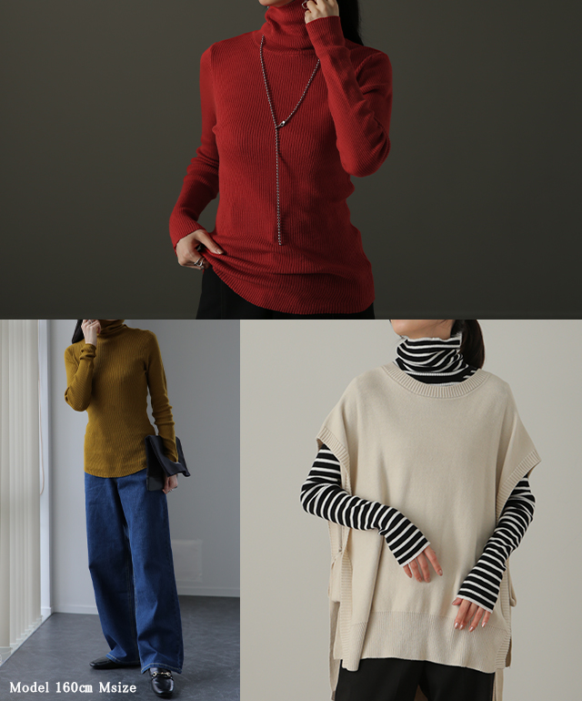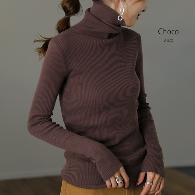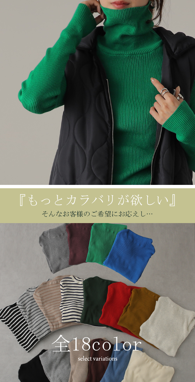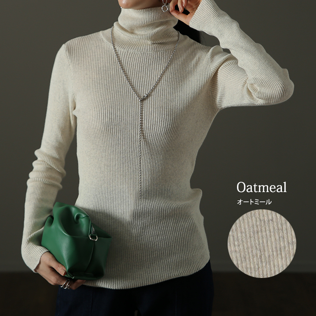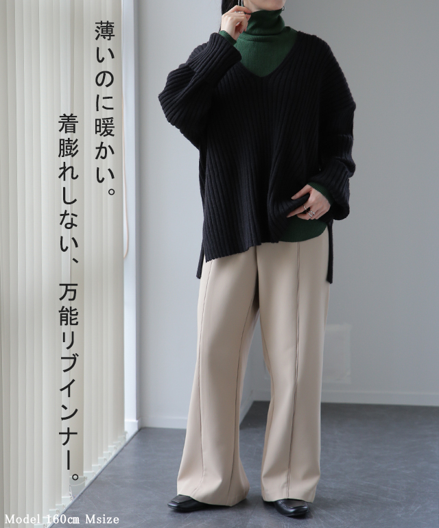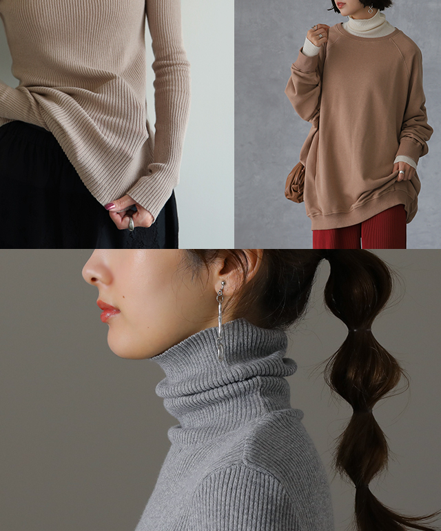 汎用性の高いシンプルなハイネックのリブプルオーバー。