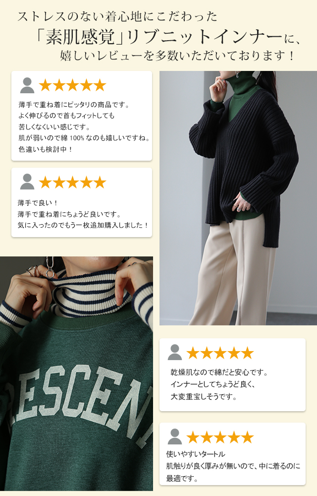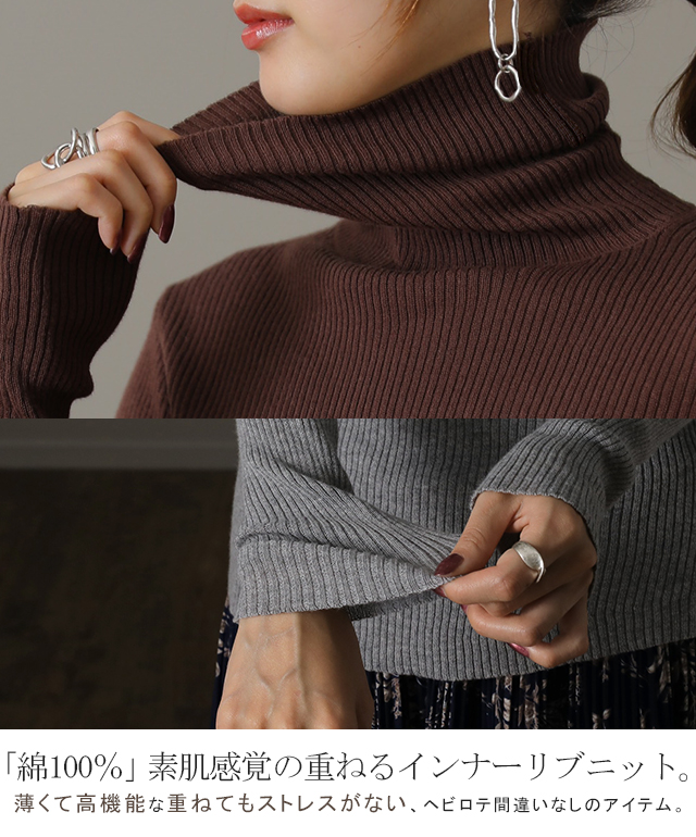 「素 肌 感 覚」 ニット 一部1月中旬入荷 リブ タートル メール便 タートルニット 下着 インナー リブニット タートルネック トップス レディース 長袖 レイヤード 重ね着 白 綿100% コットン 黒 ブラック HUG.U 秋 冬 秋新作 trend_nit