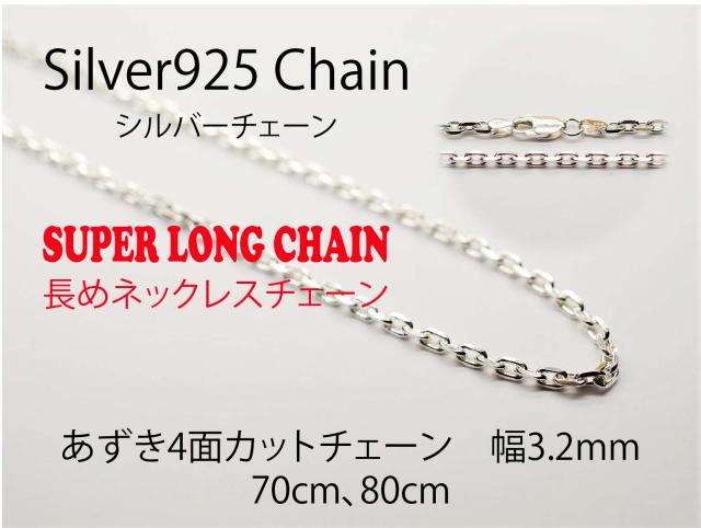 【送料無料】 シルバーチェーン 【あずき4面カット CL100-4C 幅3.2mm 長さ70cm】 ネックレスチェーン ロングチェーン シルバー925 メンズ レディース