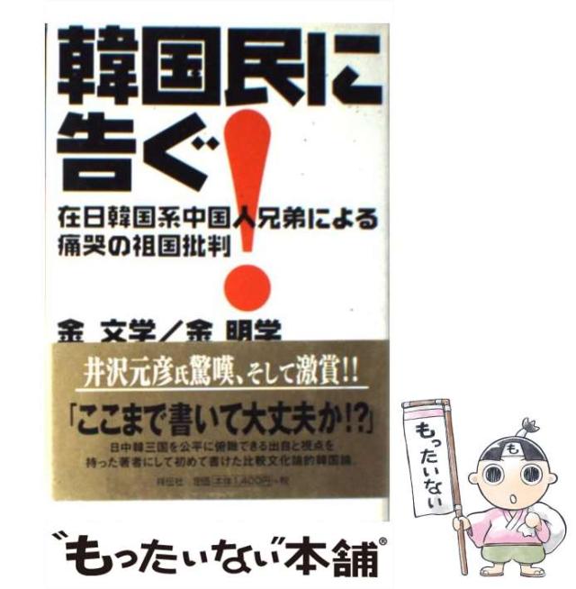 商品名:【中古】 韓国民に告ぐ! 在日韓国系中国人兄弟による痛哭の祖国批判 (Non book business) / 金 文学、 金 明学 / 祥伝社 [単行本]【メール便送料無料】