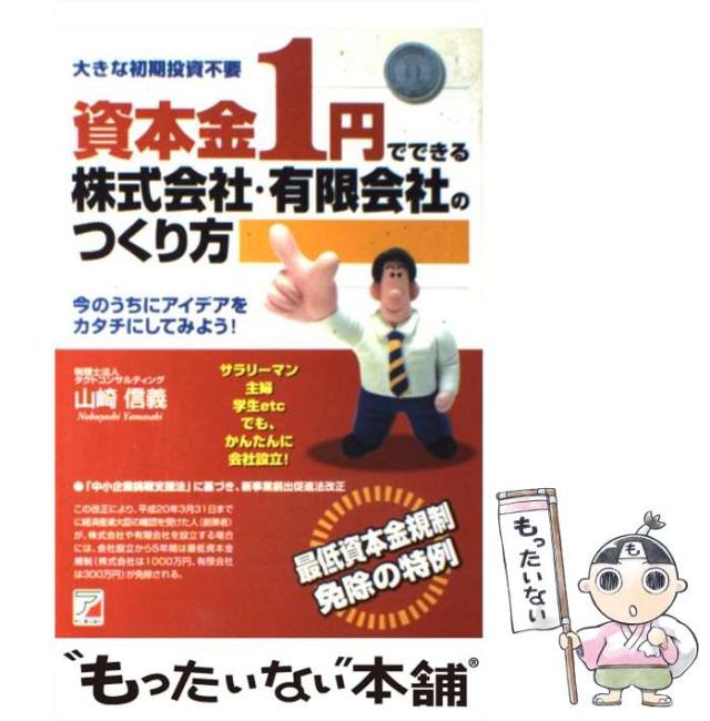【中古】 資本金1円でできる株式会社・有限会社のつくり方 大きな初期投資不要 今のうちにアイデアをカタチにしてみよう! / 山崎信義 / アスカ・エフ・プロ [単行本]【メール便送料無料】