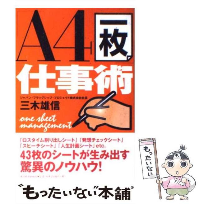 商品名:【中古】 「A4一枚」仕事術 / 三木 雄信 / 東洋経済新報社 [単行本(ソフトカバー)]【メール便送料無料】